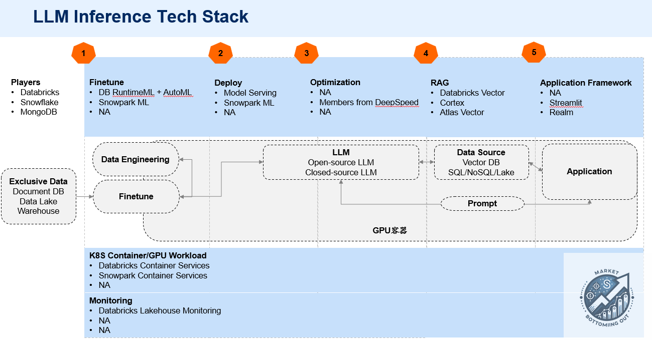 Databricks is a full-process training technology stack and completes the last link through MosaicML. However, it still has a certain gap compared to the public cloud in large model training.
